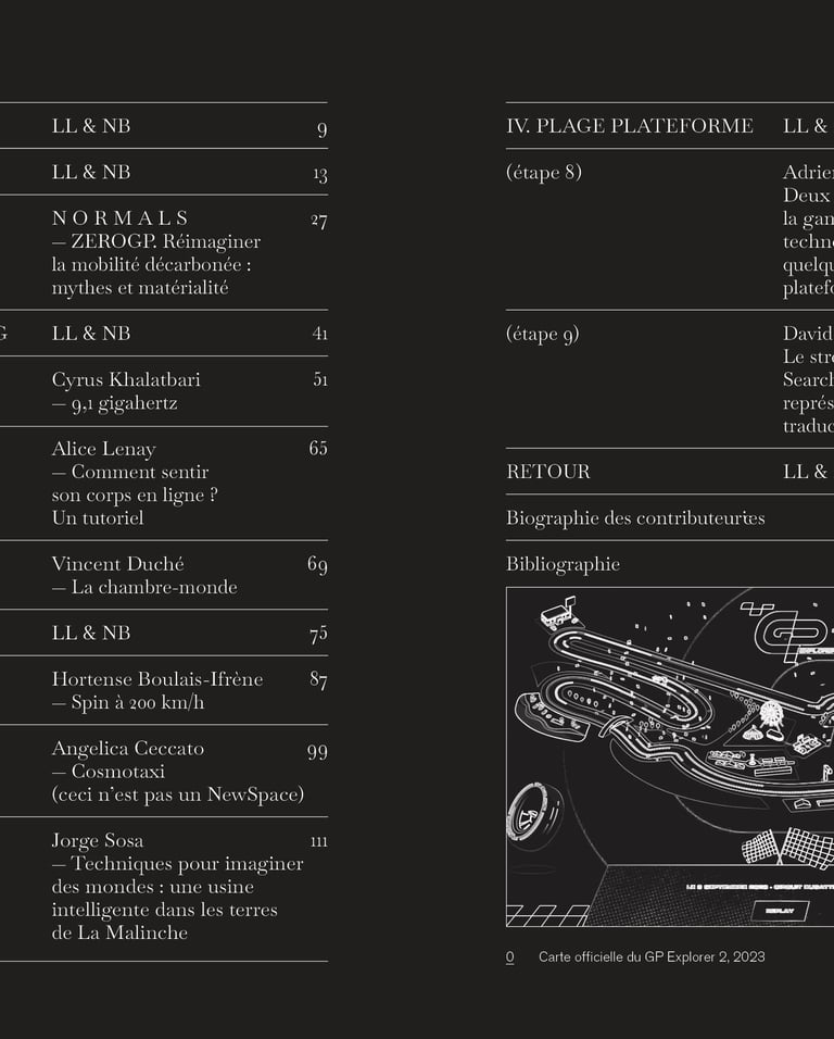 Avec les contributions de : N O R M A L S, Cyrus Khalatbari, Alice Lenay, Vincent Duché, Hortense Boulais-Ifrène, Angelica Ceccato, Jorge Sosa, Adrien Péquignot et David Gaillard.
